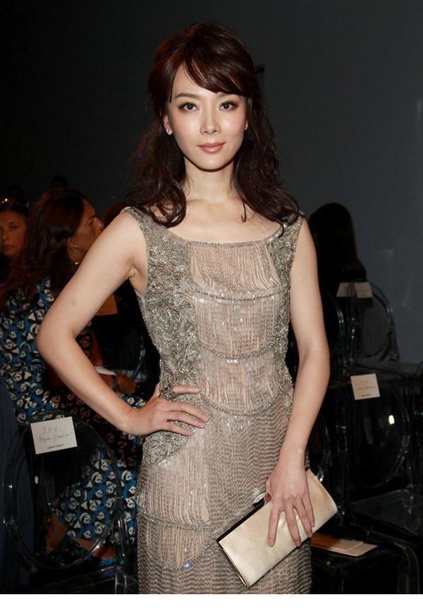 陈数米兰时装周裸色流苏裙展露东方女神风范